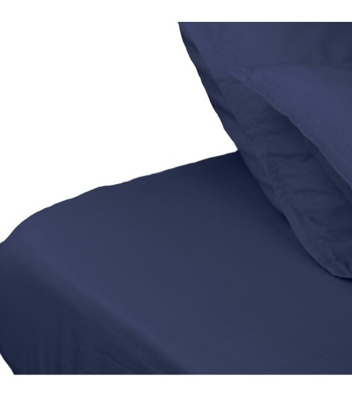 Drap-housse 160x200 bleu en...
