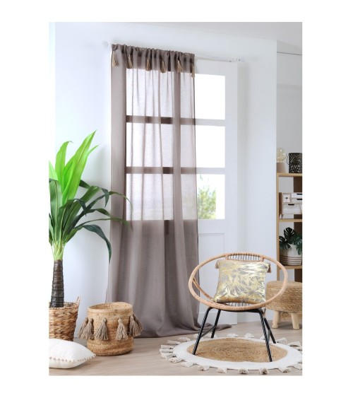 Voilage bohème à pompons en...