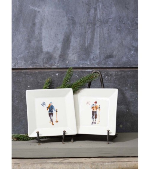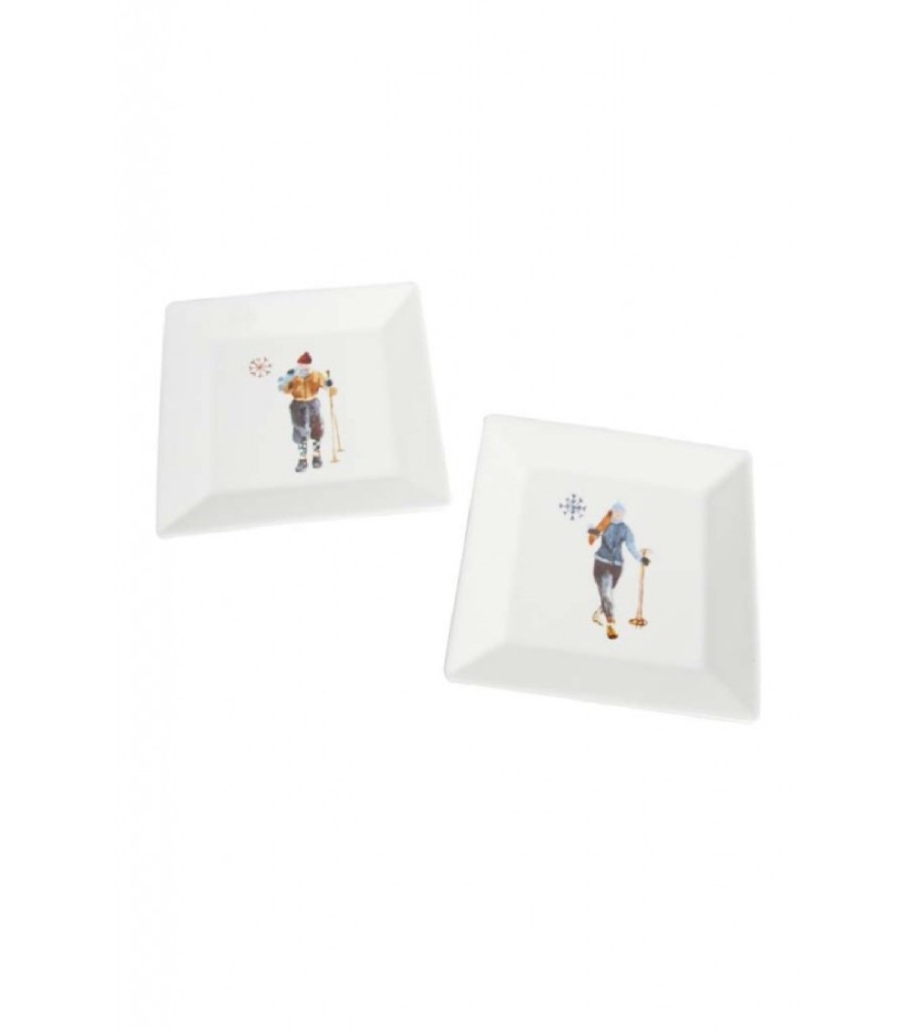 Set de 2 Assiettes creuses en céramique blanche avec dessins skieurs. Assiettes élégantes et classiques. Dimensions: 17.5x17.5cm - Couleur: Blanc - Matière: Céramique