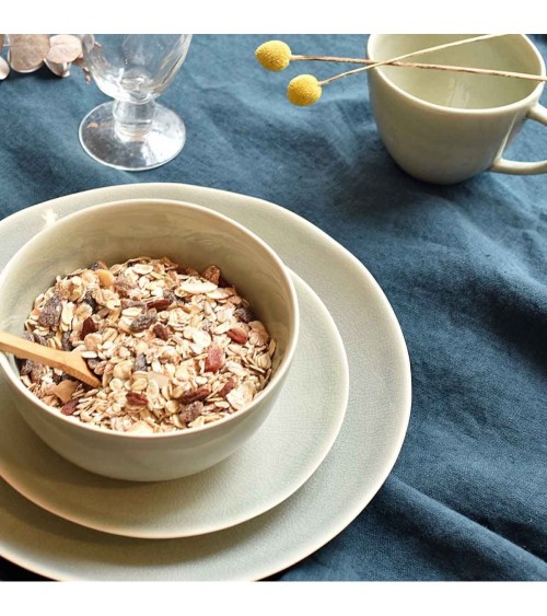 Fabriqué de manière artisanale au Portugal, on craque pour le bol Frost, qui plaît pour sa finition craquelée comme ''givrée'' dans la matière. Ce bol est réalisé en céramique vert d´eau et arbore de jolis bords irréguliers. Dû à son façonnage à la main, chaque pièce arbore une finition unique, des détails dans la matière qui lui apportent breaucoup de cachet. Du musli et des fruits vitaminés, un poké hawaïen ou une délicieuse soupe hivernale, ce bol est compatible lave.vaisselle et micro.ondes, il pourra donc facilement acueillir toutes vos recettes ! Une création Decoclico, vendu par 4. Complétez la collection Frost du mug et des assiettes plates et à dessert. Ce produit est compatible micro.ondes.