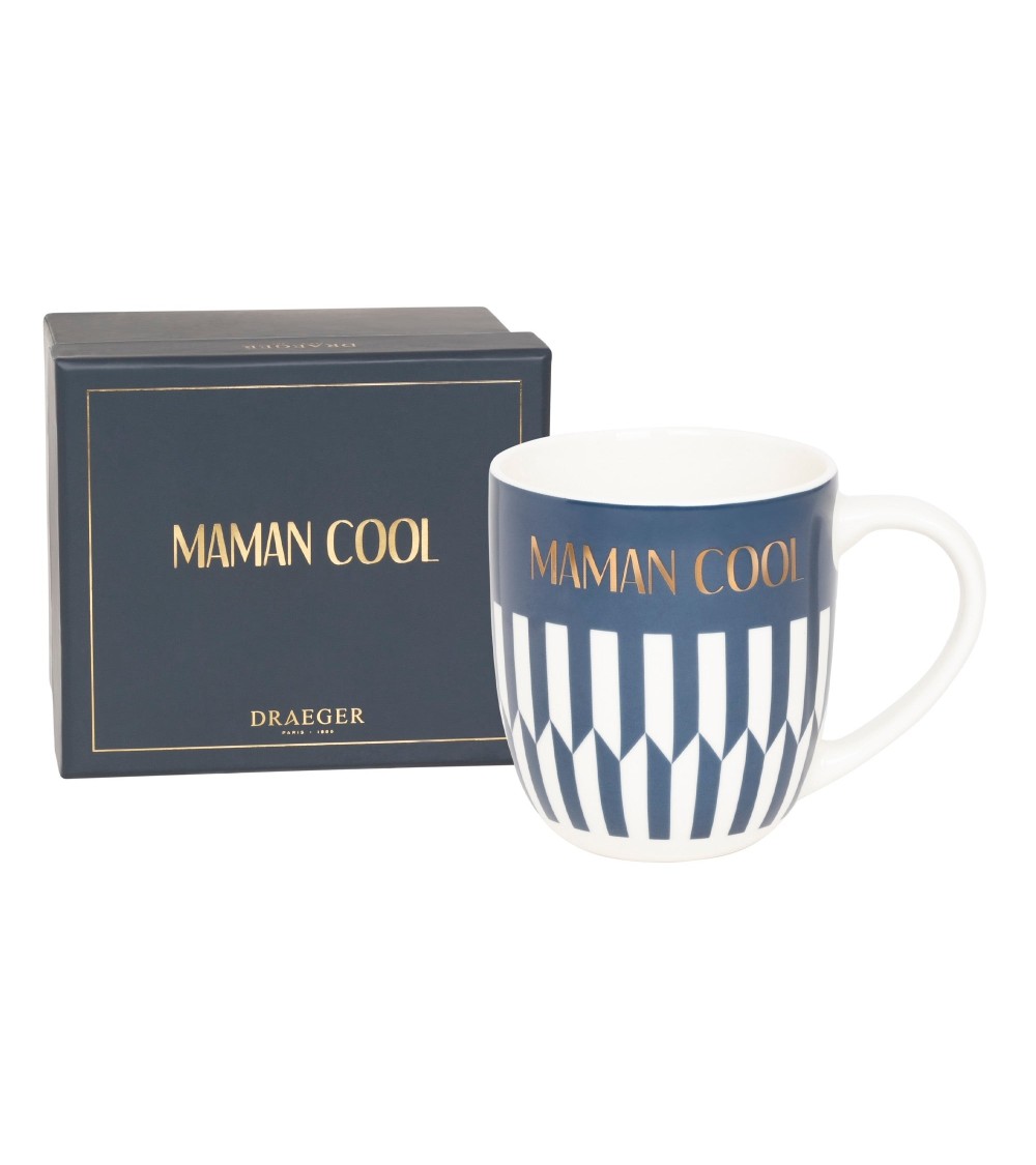 Une maman cool, c'est une maman qui s'inquiète, qui console, qui rigole, qui interroge, qui conseille, qui se montre toujours présente, qui dispute, qui espère le meilleur pour ses enfants Chaque maman est une maman cool à sa façon. Avec ce mug en céramique, nous célébrons toutes les mamans ! Si vous étiez à la recherche d'une idée cadeau pour votre maman, vous êtes au bon endroit. Pour la fête des mères, son anniversaire, Noël... ou simplement pour lui montrer votre affection !Détails du produit Mug original en céramique Dimensions - 8 cm de diamètre et 9,3 cm de hauteur Message à lor à chaud inscrit sur le mug - Maman cool Livré dans un joli coffret avec finitions or à chaud Contenance de 320 mL Lavable au lave.vaisselle Ne passe pas au micro.ondes
