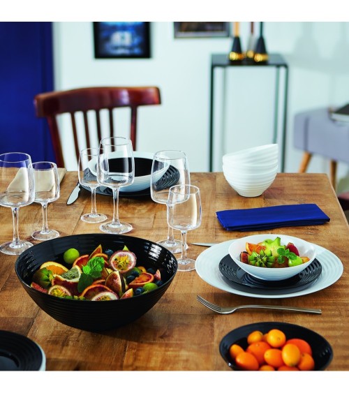 La vaisselle Harena de Luminarc se veut moderne grâce à son aile structurée et sa légèreté. Le verre est une matière adaptée à une usage quotidien - elle s'utilise au micro.ondes, passe au lave vaisselle et résiste aux chocs.