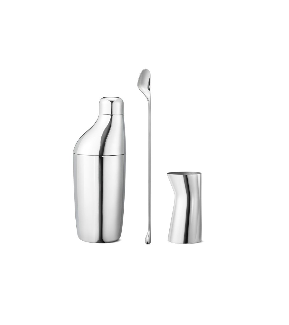 Le set de cocktail Sky, composé d'un gobelet mélangeur, d'une cuillère de bar et d'un gobelet gradué du fabricant danois Georg Jensen, a été créé par le designer français Aurélien Barbry. Les formes asymétriques rendent les outils de bar classiques spéciaux de manière simple et s'adaptent mieux à la main lors de leur utilisation. Le Sky Cocktail Set fait partie de la collection Sky de Georg Jensen et n'est pas seulement le set de départ parfait pour mélanger de délicieux cocktails, il est aussi très esthétique. C'est le cadeau idéal pour de bons amis ou pour vous-même. - Matériau: acier inoxydable - formes asymétriques