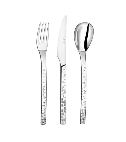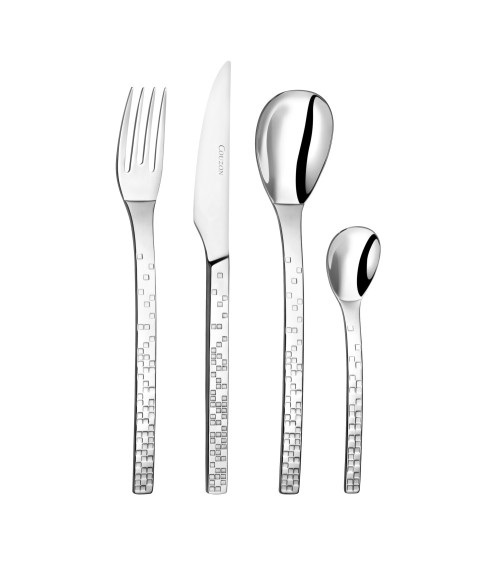 Ensemble de 74 couverts de la gamme Pix'Elle 3D livré dans un écrin en bois. Acier inox 18/10 et finition poli-miroir.L'élégance en version XXL pour ce produit graphique et épuré, réhaussé d'un motif grahique à l'effet scintillant. Telle un bijou, la gamme Pix'Elle 3D apporte de l'éclat à votre table.Référence française des arts de la table, Couzon perpétue la tradition des belles tables avec ses gammes de couverts innovants. Résolument élégants et hauts de gamme, nos couverts sont fabriqués dans des aciers de haute technologie. Couzon s'inscrit dans un processus de création constant et s'appuie sur des processus de fabrication strictes et rigoureux