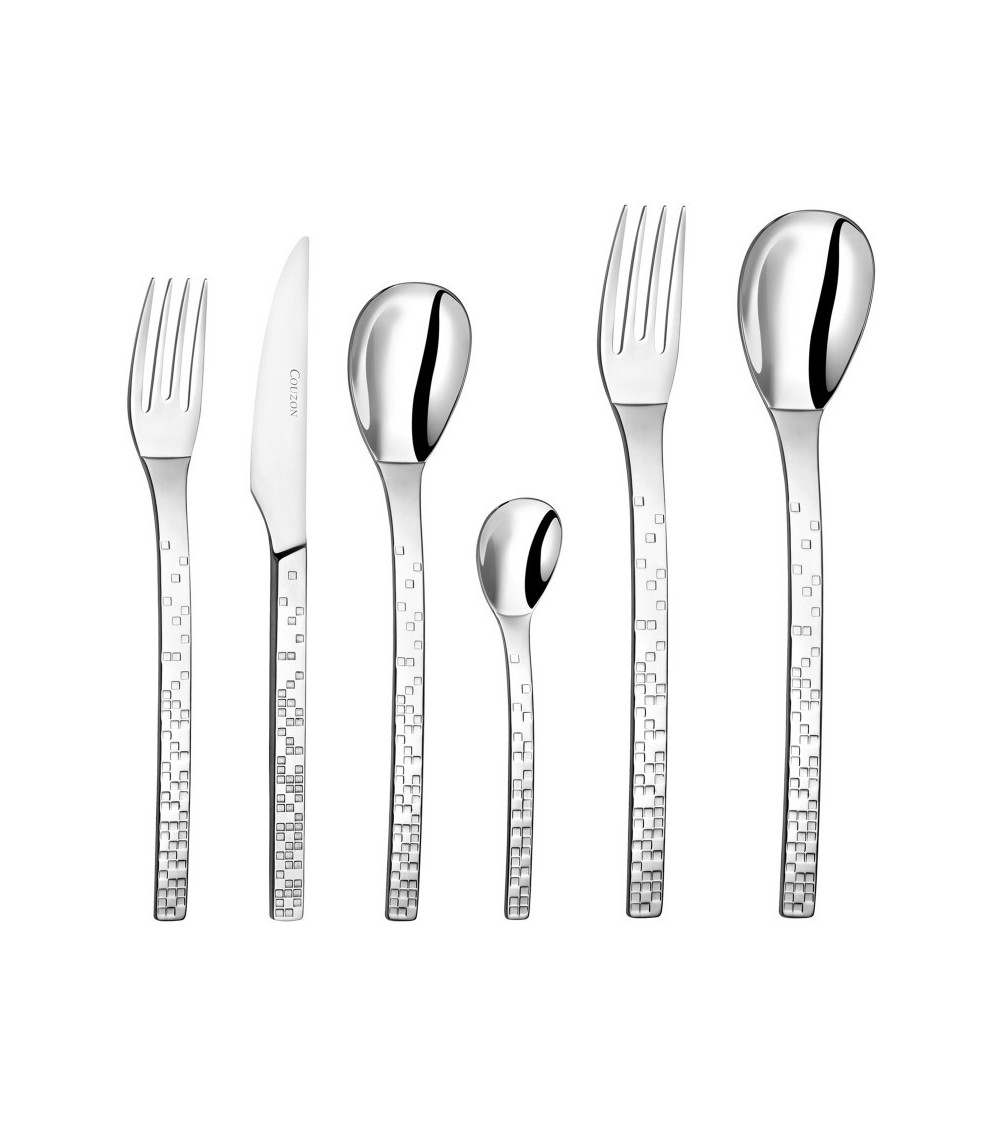 Ensemble de 50 couverts de la gamme Pix'Elle 3D livré dans un écrin en bois. Acier inox 18/10 et finition poli-miroir.L'élégance en version XXL pour ce produit graphique et épuré, réhaussé d'un motif grahique à l'effet scintillant. Telle un bijou, la gamme Pix'Elle 3D apporte de l'éclat à votre table.Référence française des arts de la table, Couzon perpétue la tradition des belles tables avec ses gammes de couverts innovants. Résolument élégants et hauts de gamme, nos couverts sont fabriqués dans des aciers de haute technologie. Couzon s'inscrit dans un processus de création constant et s'appuie sur des processus de fabrication strictes et rigoureux