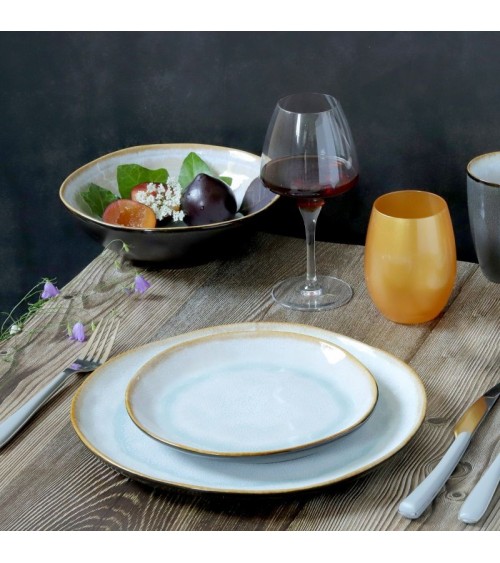 Produit à usages professionnels et particuliers.Shadow Aqua est une collection lumineuse en grès réactif émaillé, à l'arrondi irrégulier. Une touche artisanale qui crée une table remarquable de chaleur et de convivialité.Les formes organiques, les effets de matières et les nuances de coloris nacrées crées lors de la cuisson des émaux réactifs dévoilent des pièces uniques. L'extérieur grainé de gris anthracite souligne l'élégance et la délicatesse de l'intérieur nacré et crée un contraste vivifiant.Originaire de Limoges, Médard de Noblat perpétue un savoir-faire et une tradition de qualité depuis 1836. Nos porcelaines créent des univers actuels et raffinés, entre rigueur et exubérance, pour un quotidien hors norme.EntretienCompatible lave vaisselleCompatible micro-ondes