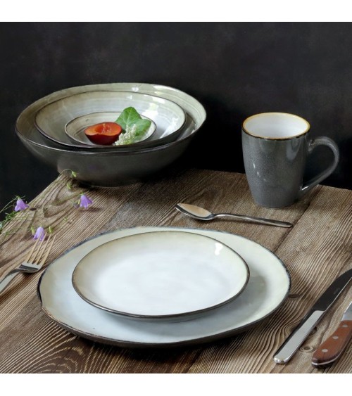 Produit à usages professionnels et particuliers.Shadow est une collection lumineuse en grès réactif émaillé, à l'arrondi irrégulier. Une touche artisanale qui crée une table remarquable de chaleur et de convivialité.Les formes organiques, les effets de matières et les nuances de coloris nacrées crées lors de la cuisson des émaux réactifs dévoilent des pièces uniques. L'extérieur grainé de gris anthracite souligne l'élégance et la délicatesse de l'intérieur nacré et crée un contraste vivifiant.Originaire de Limoges, Médard de Noblat perpétue un savoir-faire et une tradition de qualité depuis 1836. Les formes, aux lignes fines et élégantes dégagent une personnalisé créant des tables expressives au fort pouvoir de séduction. Aussi précis que stylés, les décors habillent les porcelaines pour les sublimer.EntretienCompatible lave vaisselleCompatible micro-ondes