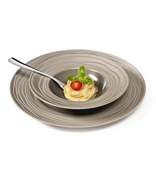 Produit à usages professionnels et particuliers.Escale nous incite au voyage. Cette collection en grès évoque les strates que la nature dessine sur la roche, le sable, sous l'effet de l'eau et du vent. Les oppositions de mat et de brillant mettent le décor en valeur et accrochent la lumière.La couleur terre, minérale et épurée, est en harmonie parfaite avec la forme des assiettes. Les ailes sont larges et le relief ondule avec légèreté.Originaire de Limoges, Médard de Noblat perpétue un savoir-faire et une tradition de qualité depuis 1836. Les formes, aux lignes fines et élégantes dégagent une personnalisé créant des tables expressives au fort pouvoir de séduction. Aussi précis que stylés, les décors habillent les porcelaines pour les sublimer.EntretienCompatible lave vaisselleCompatible micro-ondes