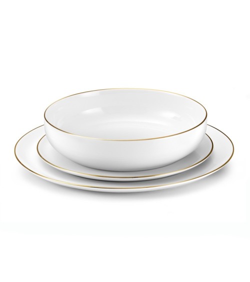 Yaka Or est une collection de porcelaine épurée et actuelle pour une table graphique et intemporelle. Yaka incarne une forme contemporaine au blanc pur et apaisant. Tout en rondeur, multi-usage, elle est idéale pour le quotidien.La ligne se pare d'un filet doré élégamment posé sur les bordures pour des tables de fin d'année chics et étincelantes.Originaire de Limoges, Médard de Noblat perpétue un savoir-faire et une tradition de qualité depuis 1836. Pensé dans les moindres détails, chaque décor de nos porcelaines nous conte une histoire avec une élégance, une fraicheur et une féminité qui caractérisent le style de la marque.