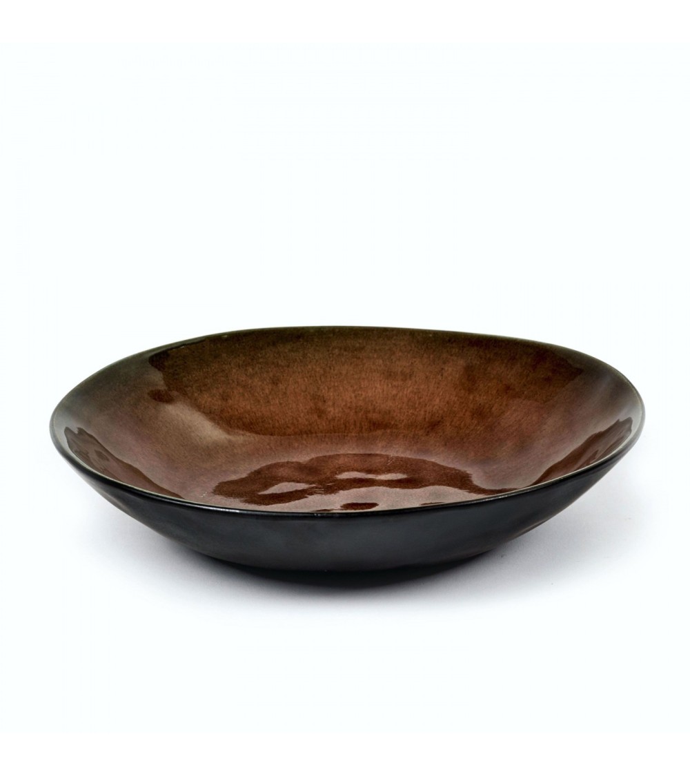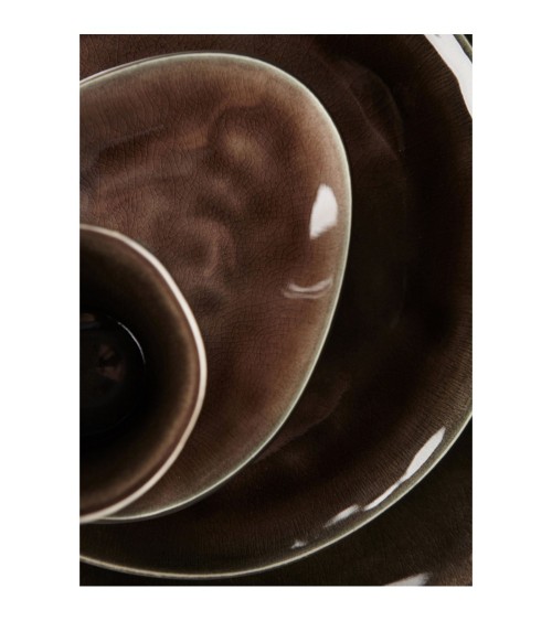 Assiette à Salade Ronde Pure en Céramique émaillée Diamètre 23,5 x H 4,5 cm Serax.Pure est une Collection d'assiettes, plats, bols, tasses, et saladiers de forme ronde ou ovale légèrement irrégulière avec un émail de nuances de vert ou marron, irisé et finement craquelé, extérieur contrastant noir mat.Pour de magnifiques Tables.De la très belle céramique authentique et chaleureuse ! - Utilisation : Passe au lave-vaisselle et au micro-ondes