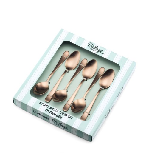 Produit à usages professionnels et particuliers.Ensemble de 6 cuillères à expresso de la collection Austin. Acier inox et finition PVD cuivre mat.L'esprit vintage sur votre table avec ce modèle Austin, sobre, et aux proportions harmonieuses. Décliné en version cuivre, avec un revêtement PVD et une finition satinée.Amefa est un acteur réputé des arts de la table au niveau international. Depuis 1931, Amefa applique les meilleurs standards de qualité pour que ses couverts, couteaux et accessoires de table s'inscrivent dans la durée et conservent un niveau de performance optimal.