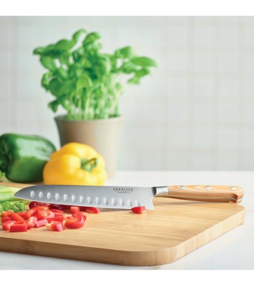 Couteau à filets, poisson ou viande, de la gamme Essentiel. La flexibilité et la finesse de la lame garantissent une découpe très précise des filets de poisson et viande en tranches extrêmement minces. Acier haute performance MoV - Molybdène Vanadium. Le dos de lame est arrondi, pour un confort de coupe optimal. Le fil de la lame est poli au cuir pour un tranchant rasoir. La mitre, les rivets et la soie sont en acier inox 18/0. La collection Essentiel est une gamme authentique et naturelle dont le manche est façonné en bois de pakka. Le bois est enrichi de résine antibactérienne. Le dessin traditionnel de la gamme, avec 3 rivets et une mitre en inox, répond aux usages culinaires exigeants : performance et précision de coupe, confort en main pour un geste maîtrisé, robustesse et facilité d'entretien. Nous recommandons d'essuyer le couteau après lavage - machine ou main - pour en prolonger indéfiniment l'usage.La marque Sabatier Trompette est née au début du 18ème siècle dans le bassin de Thiers, capitale de la coutellerie en France. Les gammes de couteaux de la marque Sabatier Trompette répondent aux usages spécifiques de la préparation culinaire. Forme de la lame, ergonomie du manche, faible poids et parfait équilibre sont étudiés afin d?obtenir des outils parfaits pour les Chefs amateurs ou confirmés.