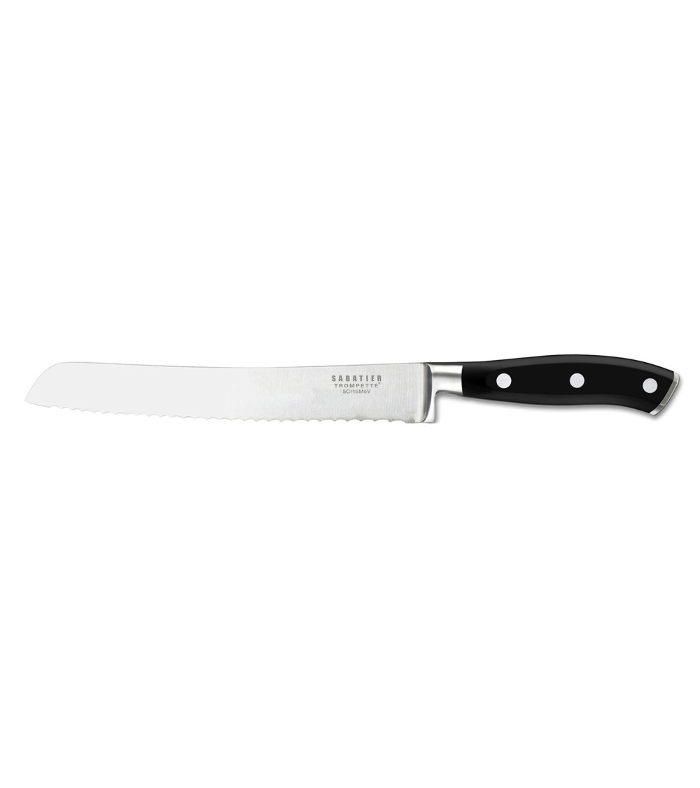 Produit à usages professionnels et particuliers.Couteau à pain de la gamme Vulcano. Lame 20cm en acier haute performance MoV - Molybdène Vanadium. Le dos de lame est arrondi, pour un confort de coupe optimal. Le fil de la lame est poli au cuir pour un tranchant rasoir. La mitre, les rivets et la soie sont en acier inox 18/0. Nous recommandons d'essuyer le couteau après lavage - machine ou main - pour en prolonger indéfiniment l'usage.La collection Vulcano décline 8 couteaux de cuisine haute performance. Les manches sont moulés en polymère haut de gamme dont le volume permet une prise en main ferme et sécurisée. La garde du manche offre une protection maximale lors de la découpe. Les couteaux Vulcano sont pourvus d?une mitre en inox.La marque Sabatier Trompette est née au début du 18ème siècle dans le bassin de Thiers, capitale de la coutellerie en France. Les gammes de couteaux de la marque Sabatier Trompette répondent aux usages spécifiques de la préparation culinaire. Forme de la lame, ergonomie du manche, faible poids et parfait équilibre sont étudiés afin d?obtenir des outils parfaits pour les Chefs amateurs ou confirmés.Entretien :Compatible lave vaisselle