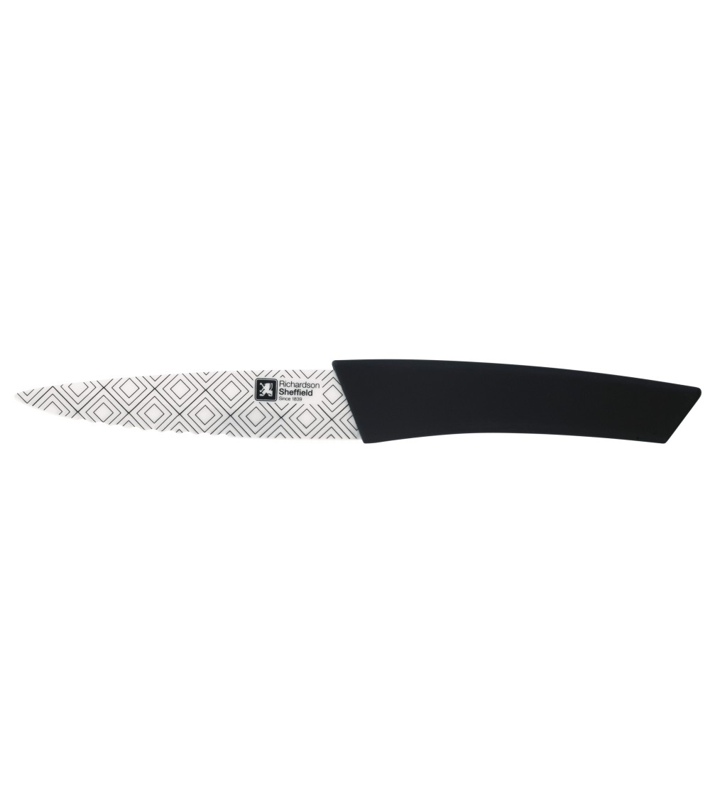 Couteau utile & steak de la collection Zenith avec lame céramique haute qualité. Manche soft touch pour un toucher doux et confort de coupe optimal.Légers et d'une maniabilité optimale, les couteaux Zenith Ceramic ont un tranchant net, propre et précis. Chaque lame de la gamme a un motif propre afin d'être facilement identifiable.Implantée à Sheffield depuis 1839, la marque Richardson Sheffield est un acteur de poids du marché mondial du couteau grâce à ses produits emblématiques et le recours aux technologies de pointe. En tant qu'expert coutelier, Richardson Sheffield fait le choix d'une qualité sans compromis pour donner à ses couteaux un niveau optimal de performance, de design et de confort d'usage.