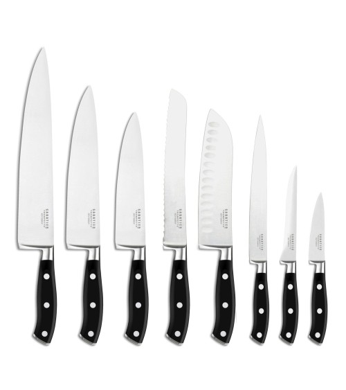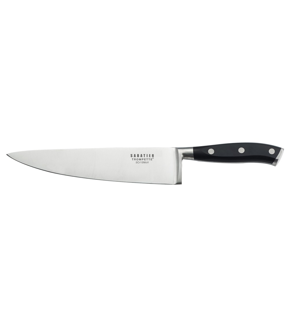 Produit à usages professionnels et particuliers.Couteau de chef de la gamme Vulcano. Lame 20cm en acier haute performance MoV - Molybdène Vanadium. Le dos de lame est arrondi, pour un confort de coupe optimal. Le fil de la lame est poli au cuir pour un tranchant rasoir. La mitre, les rivets et la soie sont en acier inox 18/0. Nous recommandons d'essuyer le couteau après lavage - machine ou main - pour en prolonger indéfiniment l'usage.La collection Vulcano décline 8 couteaux de cuisine haute performance. Les manches sont moulés en polymère haut de gamme dont le volume permet une prise en main ferme et sécurisée. La garde du manche offre une protection maximale lors de la découpe. Les couteaux Vulcano sont pourvus d?une mitre en inox.Les couteaux de Chef Sabatier Trompette ont été développés pour répondre aux exigences spécifiques de la préparation culinaire. Les lames des couteaux sont en acier inoxydable Molybdène vanadium de grande qualité avec un pourcentage élevé de carbone. Ces aciers confèrent aux produits leurs qualités de résistance, dureté, inoxydabilité, anti-corrosion et tranchant.Entretien :Compatible lave vaisselle
