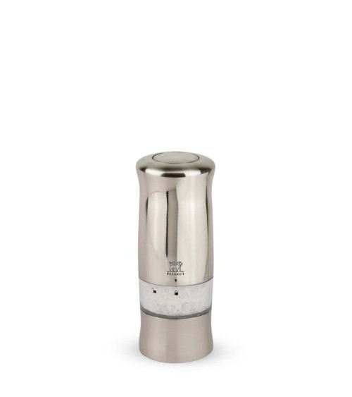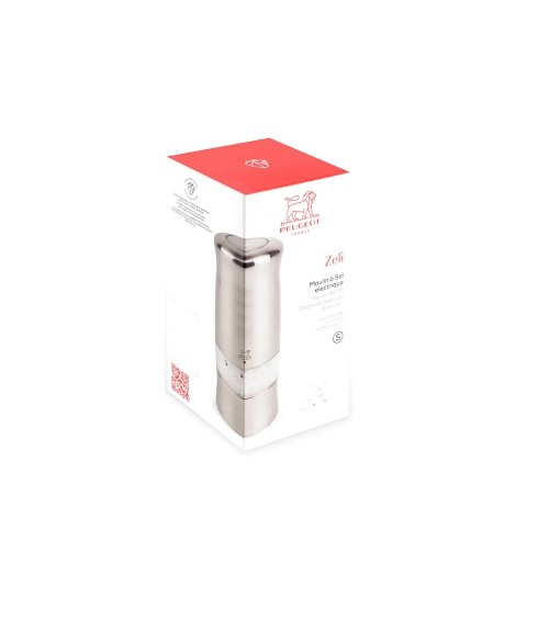 Le moulin à sel électrique Zeli de Peugeot tient parfaitement dans la main et vous permet de moudre d'une seule main. Ce moulin à sel est habillé d'ABS façon métal brossé. Donnez une touche contemporaine à votre table et votre cuisine avec le moulin à sel électrique Zeli de Peugeot et son design effet inox brossé mat. Ce moulin à sel électrique à piles, compact par sa taille, 14 cm seulement, offre une prise en main et un confort d'utilisation excellents. Il suffit d'appuyer sur le bouton positionné sur le dessus pour que le moulin se mette en marche et éclaire le débit de sel. Ce moulin à sel électrique Zeli est livré avec 6 piles et une ampoule de rechange.
