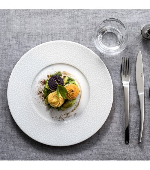 Produit à usages professionnels et particuliers.Baghera est une ligne de porcelaine fine décorée d'un subtil motif texturé pour une table urbaine et stylée. Les assiettes ont un style très actuel, avec des ailes planes et larges qui mettent le décor en valeur.Le décor, chic et contemporain, se décline en deux variantes couleur : platine ou blanc, que l'on peut alterner sur la table pour un résultat encore plus graphique. Les tasses café et thé sont blanches. On vient les associer à des soucoupes décorées.Originaire de Limoges, Médard de Noblat perpétue un savoir-faire et une tradition de qualité depuis 1836. Nos porcelaines créent des univers actuels et raffinés, entre rigueur et exubérance, pour un quotidien hors norme.EntretienCompatible lave vaisselleCompatible micro-ondes