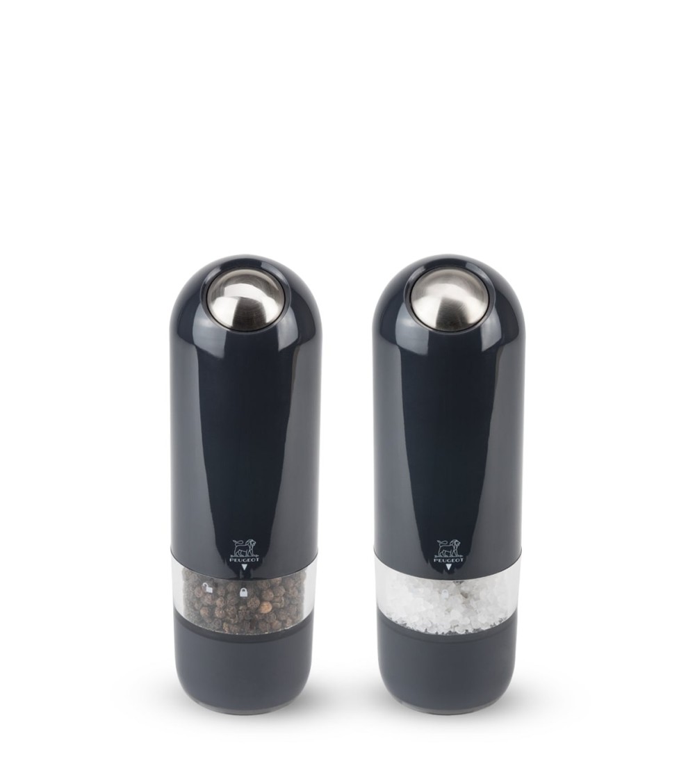 Optez pour un duo de moulins électriques à poivre et à sel ludique avec Alaska. Pratiques, les moulins Alaska de Peugeot permettent de moudre et de cuisiner en même temps et sans effort. La collection de moulins électriques Alaska de Peugeot, avec son design ludique, a été pensée s'utiliser d'une seule main et sans effort. Facile d'utilisation, il suffit de presser sur le bouton inox situé sur la partie supérieure du moulin pour le mettre en marche. Chaque moulin est équipé d'un réservoir transparent à travers lequel vous distinguerez facilement l'épice contenue, et d'une petite lampe qui s'éclaire lors de la mise en marche pour contrôler le débit du poivre ou du sel. Les moulins Alaska bénéficient d'un mécanisme Peugeot garanti sans limitation de durée. Ce duo est composé d'un moulin à poivre et d'un moulin à sel électriques, coloris gris quartz. Il est livré avec les piles, l'ampoule de rechange et les recharges de poivre et de sel nécessaires pour remplir les moulins. Le duo électrique Alaska quartz se révélera parfait pour donner de l'éclat et des saveurs à tous vos plats au quotidien.