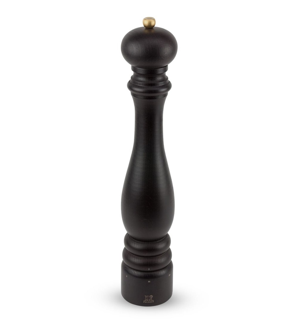 La taille impressionnante et la silhouette élancée du moulin à poivre Paris u'Select 40 cm vont vous séduire. Cette pièce de bois, dans sa teinte chocolat, se dote d'une ingénieuse innovation permettant de régler avec précision la taille de mouture du poivre. Entièrement réalisé en bois, le moulin à poivre Peugeot de la collection Paris u'Select, du haut de ses 40 cm est impressionnant par sa taille et le galbe de ses lignes. Son réservoir grande capacité renferme les grains de poivre qui, moulus au dernier moment dans le performant mécanisme Peugeot, révélera toute leurs saveurs. Au sommet de ce moulin, le bouton dans sa finition doré est gravé d'une tête de lion, stylisée, emblème de la marque Peugeot. Et pour parfaire le tout, le moulin manuel Paris chocolat est doté du système breveté de réglage de mouture u'Select. A table ou en cuisine, le moulin Paris est un instrument de chef.