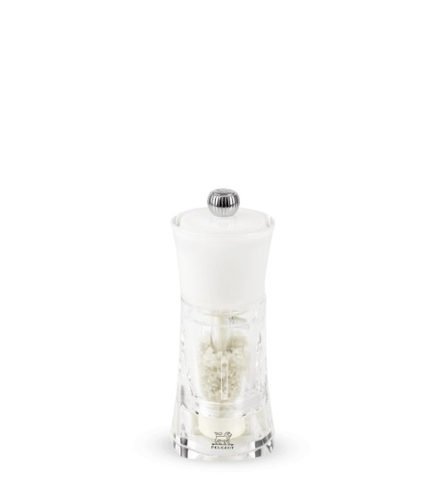 Le modèle Molène est pensé pour moudre le sel de mer dont l'humidité est forte. Le moulin à sel humide Molène blanc est équipé d'un mécanisme Peugeot breveté permettant d'obtenir une mouture homogène, sans risque de blocage. Pensé pour le sel humide, ce modèle Molène blanc est doté d'un mécanisme breveté permettant d'obtenir une mouture homogène, sans risque de blocage même sur du sel très humide ou aggloméré. Son secret ? Un mécanisme Peugeot en céramique, garanti sans limitation de durée, équipé d'une hélice qui brasse le sel pour l'aérer et le guider afin d'assurer un débit constant. Cette innovation se combine à un design élégant : une jolie tête blanc nacrée et un corps transparent qui sait jouer avec la lumière. Par ailleurs, molène blanc est légèrement torsadée, favorisant la prise en main. Ce moulin se décline également avec un mécanisme pour le poivre pour créer un duo parfait !