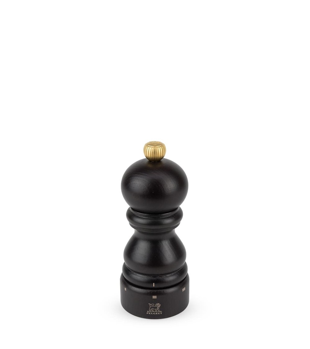 Silhouette emblématique, système de réglage de mouture breveté, ce moulin à poivre Paris, dans son coloris chocolat, révèle les sens. Compact, ce moulin à poivre manuel de la collection Paris est doté d'un ingénieux système de réglage de mouture, appelé u'Select. Situé sur sa base, il vous permet de sélectionner avec précision la taille du poivre souhaité. Positionné sur 1 la mouture délivrée sera très fine, sur 6 vous obtiendrez une mouture de poivre beaucoup plus grosse. La silhouette de ce moulin en bois, emblématique de Peugeot est surmontée d'un bouton doré élégant. Tel un bijou, il ajoute une touche précieuse à ce moulin.