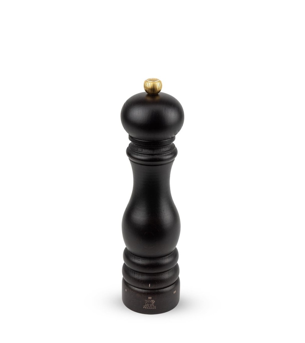 Courbes et contre-courbes caractérisent le design intemporel et emblématique du moulin manuel à sel Paris u'Select 22 cm. Il associe la chaleur et la douceur du bois couleur chocolat. Les formes généreuses du moulin à sel Paris u'Select de Peugeot s'associent parfaitement à la chaleur du bois qui le compose. Un look gourmand souligné par une teinte chocolat, chaleureuse et élégante. Le moulin Paris, crée par Peugeot en 1987 est l'archétype du moulin. Adopté par les plus grands chefs du monde entier, il est synonyme d'une cuisine raffinée et authentique. U'Select, ce moulin à sel manuel Peugeot propose un réglage de la mouture sur mesure. Tournez la bague située à la base du moulin pour bénéficier d'une mouture adaptée à vos envies. 1 pour une mouture très fine, 6 pour une mouture de sel beaucoup plus grosse. En cuisine, le moulin à sel Paris devient l'instrument indispensable des amateurs de saveurs.