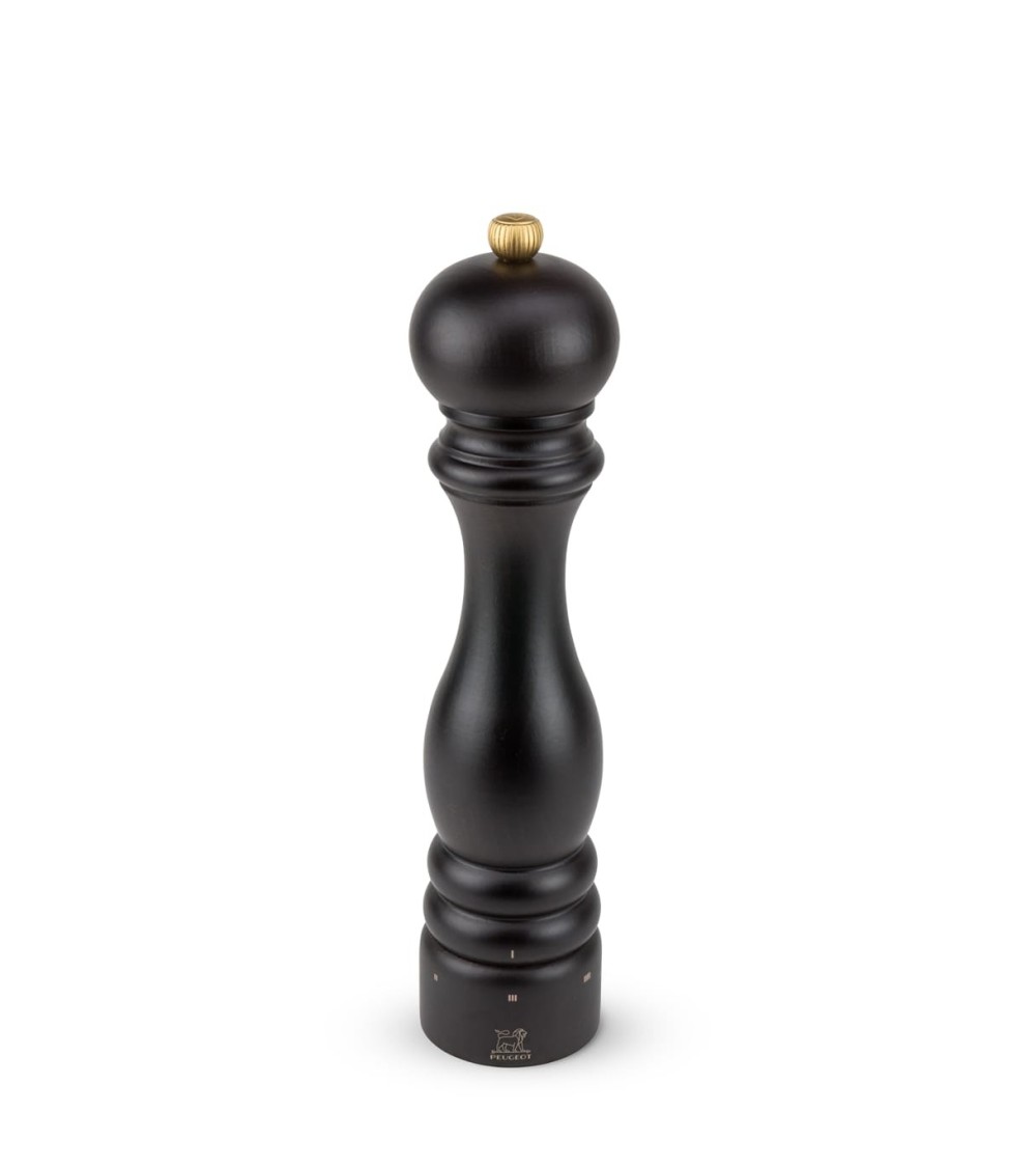 Succombez à la saveur du poivre avec ce moulin manuel Paris u'Select chocolat. Moulu très finement ou simplement concassé dans le moulin Peugeot, le poivre libère une infinité d'arômes inattendus pour le plus grand plaisir des papilles. Parce que le poivre se moud au dernier moment pour profiter pleinement de ses arômes, le moulin manuel à poivre Paris u'Select de Peugeot est l'instrument idéal. Avec son système ingénieux de réglage de mouture, vous pourrez choisir en toute simplicité la taille de mouture de poivre la plus adaptée à vos créations culinaires. Moulu très finement le poivre dévoile son piquant. A l'inverse, une mouture plus grosse va mettre en lumière ses arômes inattendus. En plus d'être fonctionnel, le moulin à poivre en bois Paris u'Select est particulièrement élégant. Avec sa silhouette galbée, très élancée du haut de ses 27 centimètres, le moulin Paris est surmonté d'un bouton bijou doré, qui lui donne une touche délicatement précieuse. En cuisine ou sur table, il fera sensation auprès de vos convives.