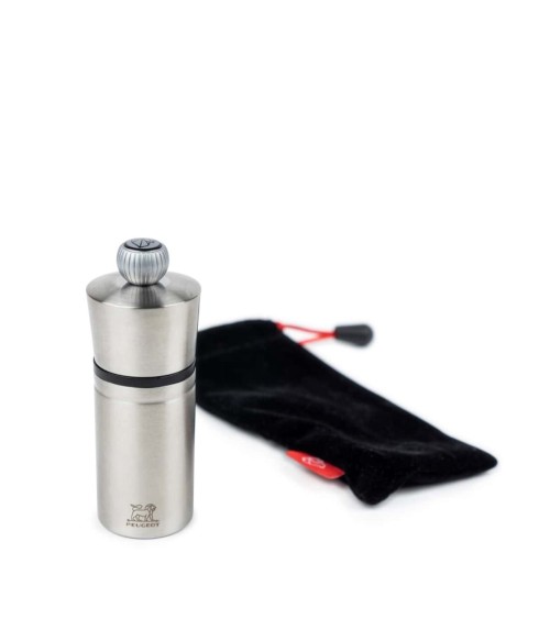 Imaginé pour les amoureux du poivre ! Qu'importe le lieu, en pique-nique au bord de l'eau, en randonnée sur un sommet enneigé, au restaurant, ou encore chez des amis, rien ne remplace un bon poivre fraichement moulu. Pour ces vrais amateurs de poivre, Peugeot a créé ce moulin à poivre compact, habillé d'inox et protégé d'une pochette en feutrine. Le parfait écrin pour une utilisation à la fois chic et tout-terrain. Ce moulin à poivre manuel de poche se transporte partout. Equipé d'un mécanisme garanti sans limitation de durée, il offre une mouture précise et réglable. En effet, d'un simple geste, en serrant le bouton, la taille de la mouture du poivre peut être ajustée (du plus fin, si on aime la puissance, au plus gros, si on recherche la saveur du poivre). Pour avoir toujours sur soi son poivre préféré et profiter pleinement de toute la saveur du poivre fraichement moulu.