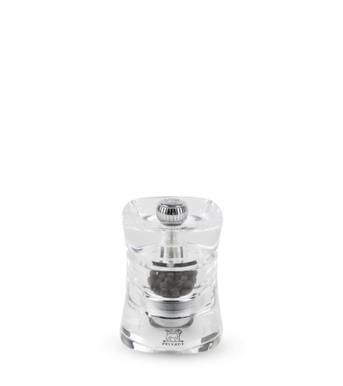 Si le moulin à poivre Peugeot Baltic fait partie des plus petits modèles de la gamme avec ses 8 cm, Il a aussi tout d'un grand ! En acryl, entièrement transparent, ce moulin à poivre fait l'éloge des épices qu'il contient. Le moulin à poivre Peugeot Baltic est craquant par sa forme et sa taille. En acryl, entièrement transparent, son corps laisse apparaître les grains de poivre qu'il contient. Tel un bijou, le bouton de réglage permet de régler la finesse de la mouture du poivre (plus le bouton est vissée, plus le poivre est fin). Comme tous les moulins Peugeot, son mécanisme est garanti sans limitation de durée. Un moulin d'une grande élégance qui forme un duo éclatant avec son binôme sel.