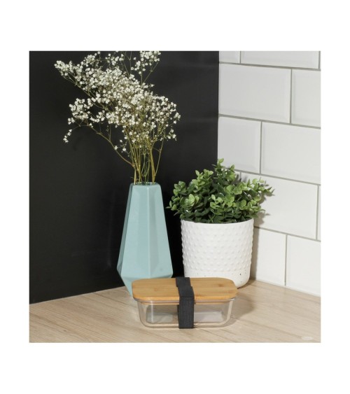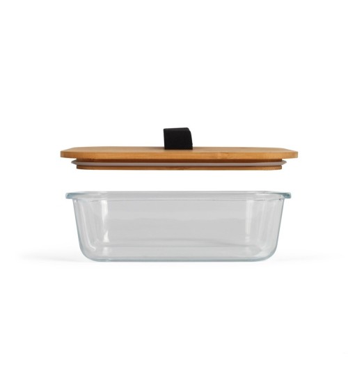Lunch boxCapacité 630 mlCouvercle hermétiqueRécipient en verre borosilicate / couvercle en bambouAdapté à une cuisson au four et micro-ondes sans couvercleCompatible lave-vaisselle sans couvercleÉlastique intégré