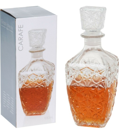 Très jolie carafe à whisky en verre taillé au style vintage marqué. Cette belle carafe à whisky sera un cadeau apprécié ! Dimensions: Hauteur 23cm x Longueur 9cm x largeur 9cm - Contenance: 900Ml - Matière: Verre - Couleur: Transparent