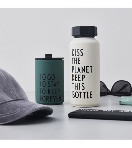 Design Letters nous surprend encore avec ces gourdes isothermes de 500ml graphiques avec des messages toujours originaux et responsables. Sans BPA, cette gourde en acier inoxydable gardera votre boisson chaude pour 12 heures et froides pendant près de 24 heures ! Matière : Bouteille : acier inoxydable / Couvercle : PP Dimensions en cm : 19,7 x diam 7,7 Contenance : 500ml Police dessinée à la main par Arne Jacobsen en 1991