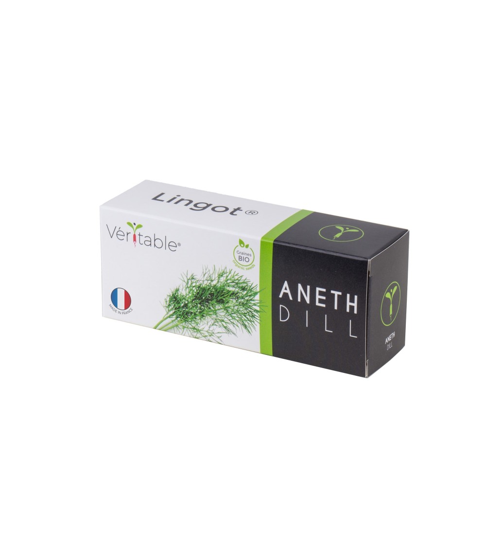 Laneth regorge de vitalité et son goût subtilement anisé est proche de celui du cèleri, et du fenouil frais. Excellente avec tous les poissons, crus ou cuits.Profitez de la technologie Lingot® Véritable : des recharges 100% naturelles (sans OGM ni pesticides) prêtes à lemploi (Brevet déposé).Lingot® Aneth BIO compatible avec la gamme de potagers dintérieur Véritable®