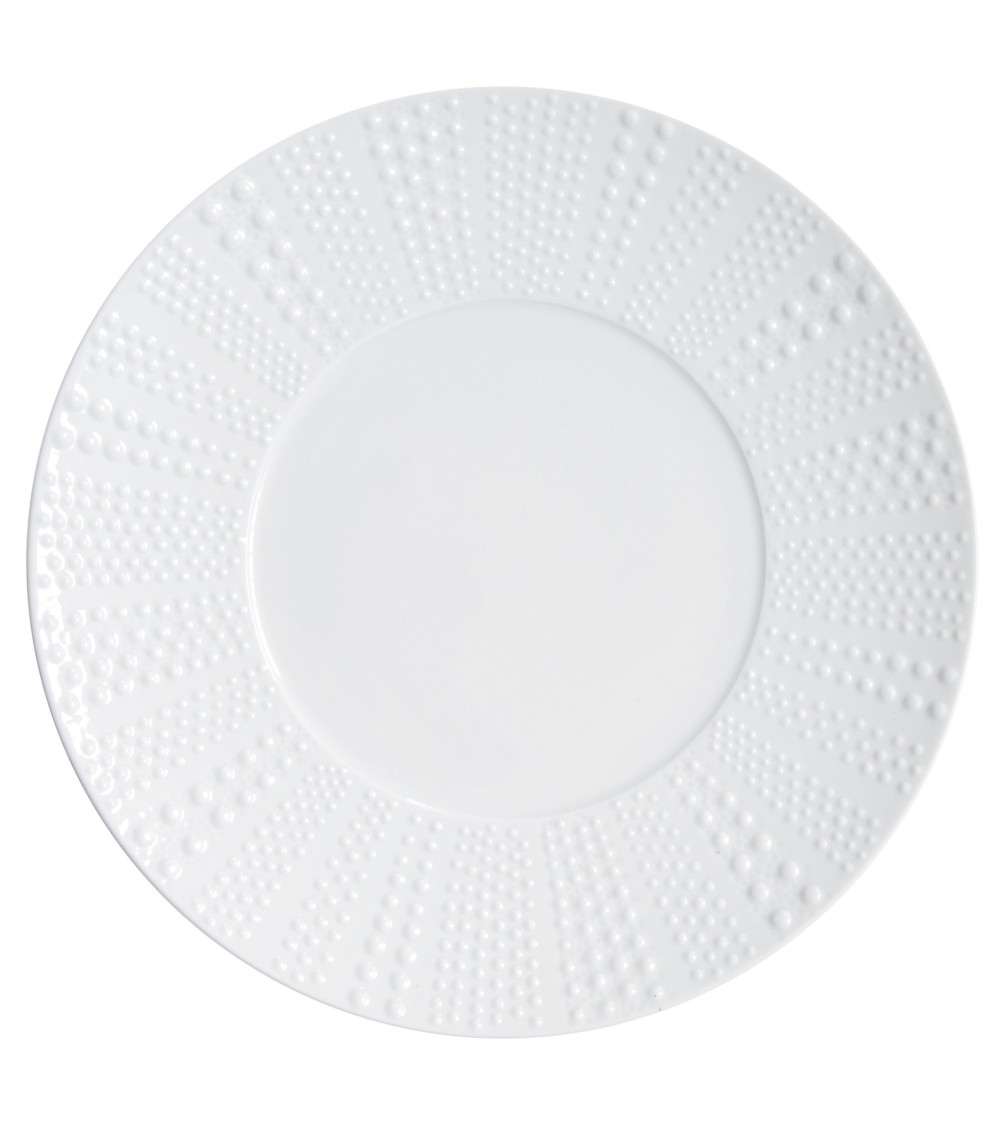 La collection Sania Blanc se destine à une table haut de gamme, intemporelle et lumineuse. Elle est en porcelaine fine émaillée blanche, gravée en relief sur une forme ronde avec aile. Différentes gravures se mixent pour donner à l'ensemble vie et modernité.La richesse du décor inspiré de la nature reprend les reliefs d'oursins et de coquillages dont les billes diffèrent selon les pièces.Originaire de Limoges, Médard de Noblat perpétue un savoir-faire et une tradition de qualité depuis 1836. Nos porcelaines créent des univers actuels et raffinés, entre rigueur et exubérance, pour un quotidien hors norme.