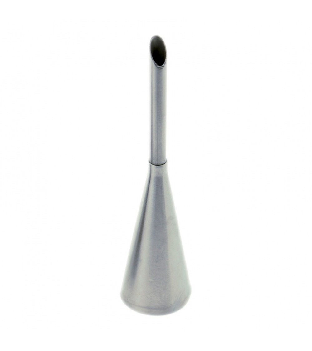 Douille inox pour garnir avec précision vos gâteaux et plus spécialement vos choux à la crème, à la chantilly ou vos éclairs. Son embout très fin et allongé vous permet de faire un petit trou invisible dans vos pâtisseries afin de les remplir de la crème de votre choix. Dimensions : Ø 0,5 x 2,4 x H7,4 cm Pour la nettoyer, un passage sous l'eau chaude suffit. Douille à garnir les choux en inox