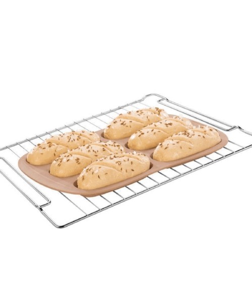 Moule à petits pains Vous voulez réaliser vos petits pains maison, c'est tout à fait possible avec ce moule en silicone Tescoma! Fabriqué en silicone de 1ère qualité et sans BPA, le moule à petits pains résiste jusqu'à 230°C au four! Très pratique, il se lave au lave-vaisselle. Il est parfait pour réaliser 6 petits pains mais aussi des pains à hot-dogs par exemple. Dimensions : Moule à pains : 27 x 20.5 cm. Diamètre de chaque empreinte : 14 x 5,5 cm. Profondeur : 1 cm Les produits de la marque Tescoma sont créés de A à Z dans le centre de design Tescoma de la société à Zlín, République Tchèque