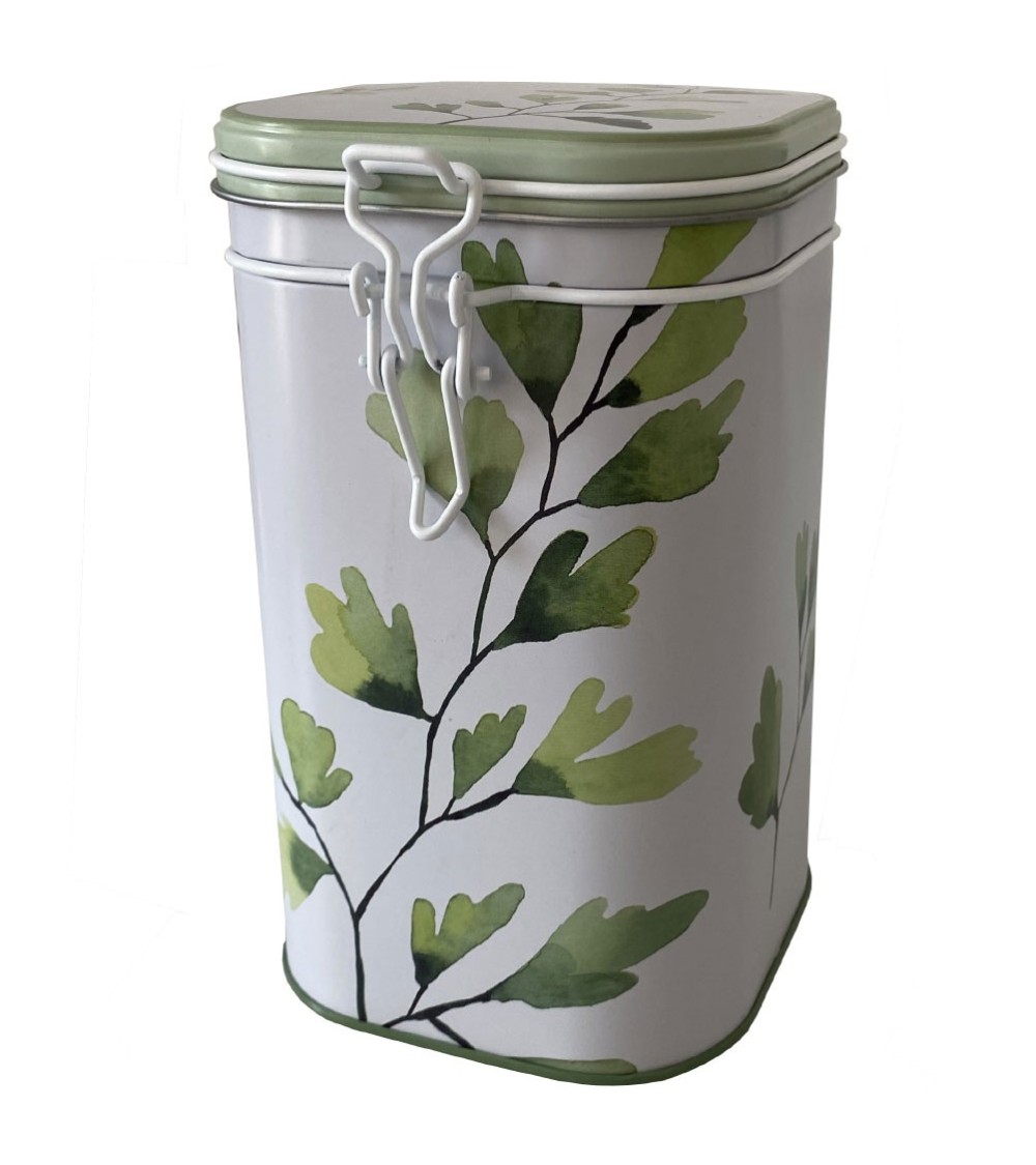 Boite métallique pour le thé Contenance 250 gr Couvercle aromatique et fermeture à clip pour un stockage sûr. Dim : 9.5 x 9.5 x 16 cm