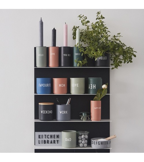 Votre tasse préférée créé par design Letters et son lettrage unique au monde ! Pour la café, pour le thé, cette tasse peut même vous servir de pot à crayons ou de pot à aromates. Matière : Porcelaine fine Dimensions en cm : 8,5 x diam 8 Caractéristiques : Passe au micro-ondes et au lave-vaisselle Police dessinée à la main par Arne Jacobsen en 1991
