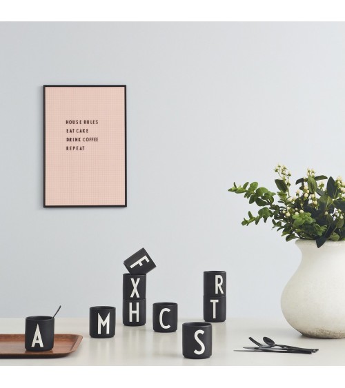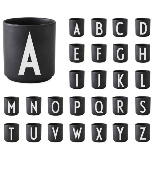 Design Letters propose toute une ligne de vaisselle, d'accessoires et de textiles ornés de lettres très graphiques. Ces mugs peuvent aussi bien servir de tasses, de pots à crayons, de petits pots à plantes, de verres à dents... Ou tout simplement de déco originale : un prénom, un mot qui vous est cher... Faites-vous plaisir. Tasses empilables. Matière : Porcelaine fine Dimensions en cm : 8,5 x diam 8 Caractéristiques : Passe au micro-ondes et au lave-vaisselle Police dessinée à la main par Arne Jacobsen en 1937