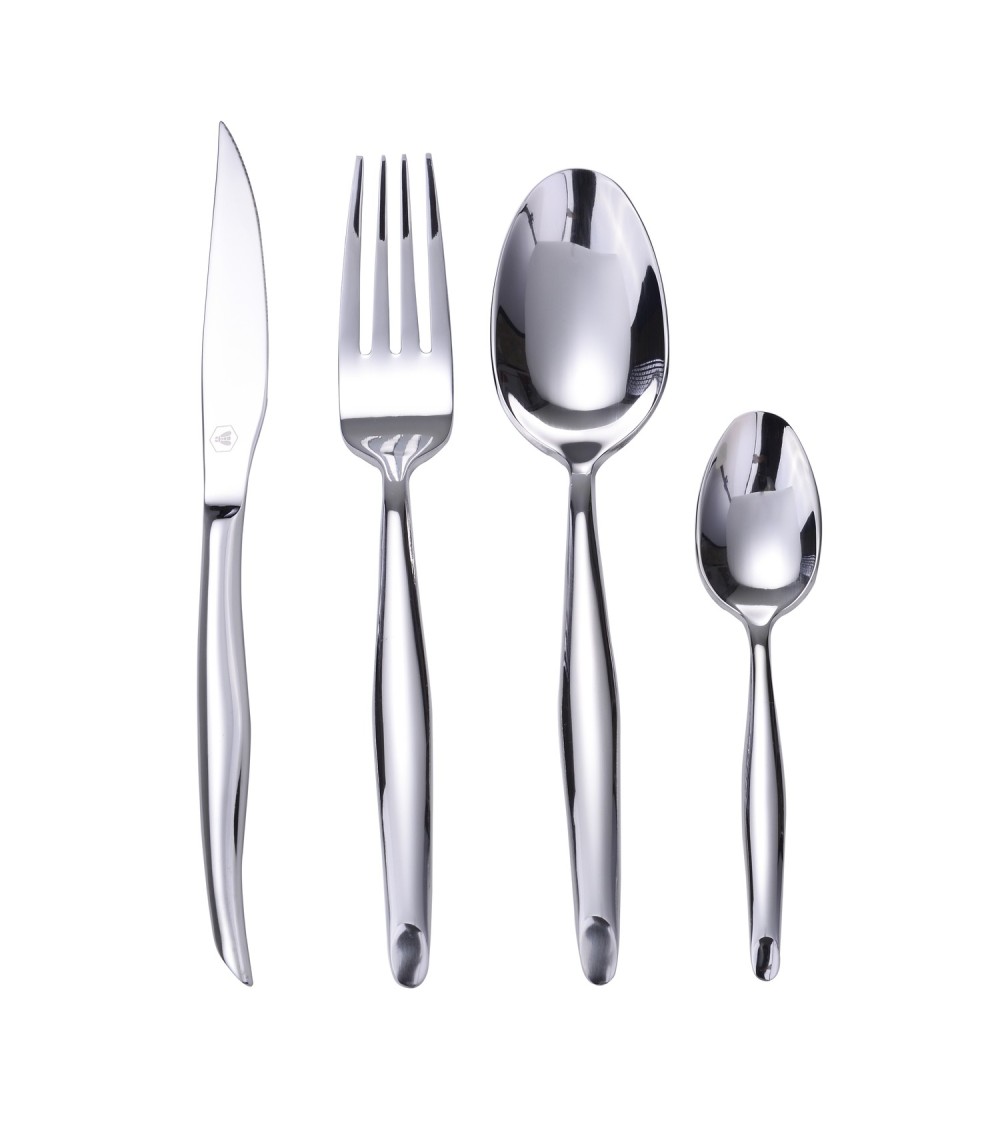 La nouvelle tendance métallique argenté est ancrée et maintenant sur vos couverts de table pour plus d'élégance et de modernité. Impressionnez vos amis avec ces couverts cosy et classy. La ménagère se compose de 16 pièces :4 x couteaux, 4 x fourchettes, 4 x cuillères à soupe, 4 x cuillères à café. Fabriquée en acier inoxydable 100% durable.Designée en France Entretien-Facile à nettoyer et a pièces adaptées au lave-vaisselle.Evitez de frotter les couverts avec une brosse trop dure afin de ne pas les rayer.