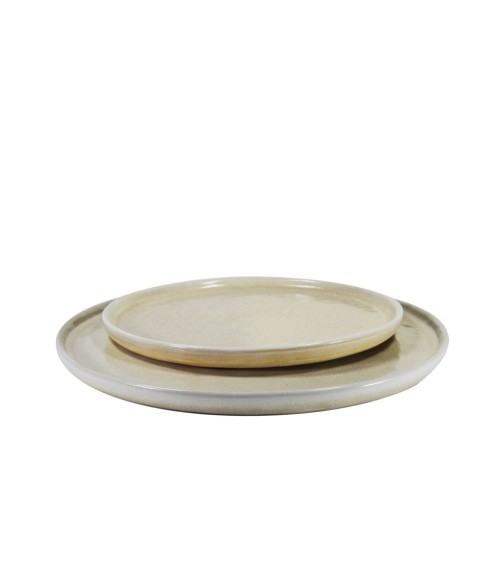 Assiette dessert en grès artisanal beige 22 cm - Lot de 6