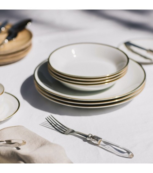 Assiette creuse Porcelaine de Limoges Blanche - Bord doré 19 cm