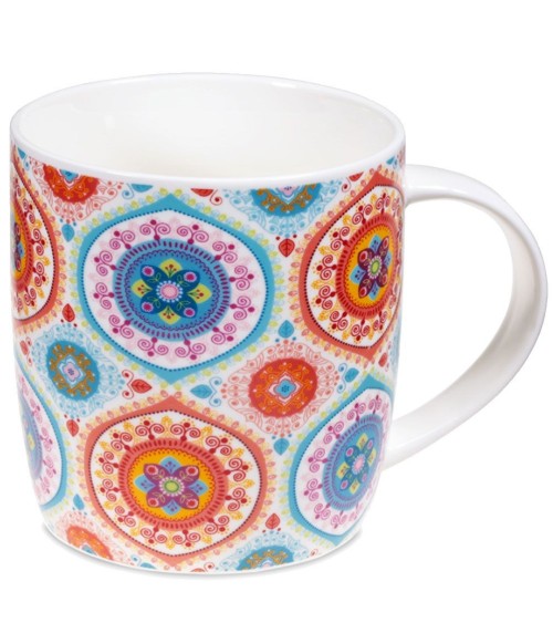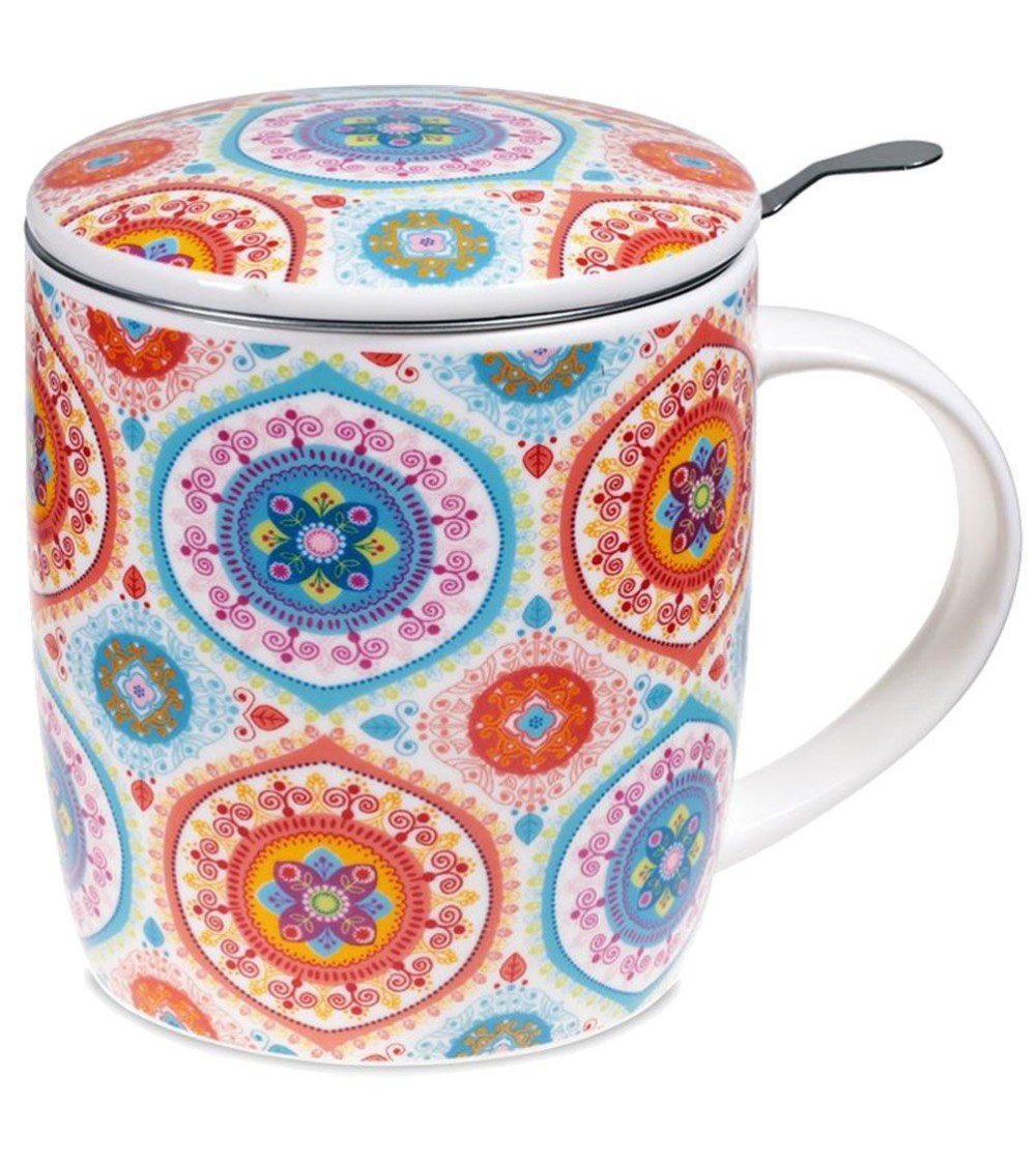 Mug Mandala en porcelaine avec infuseur Mug + couvercle + infuseur en métal En porcelaine sérigraphiée Hauteur : 9.5 cm
