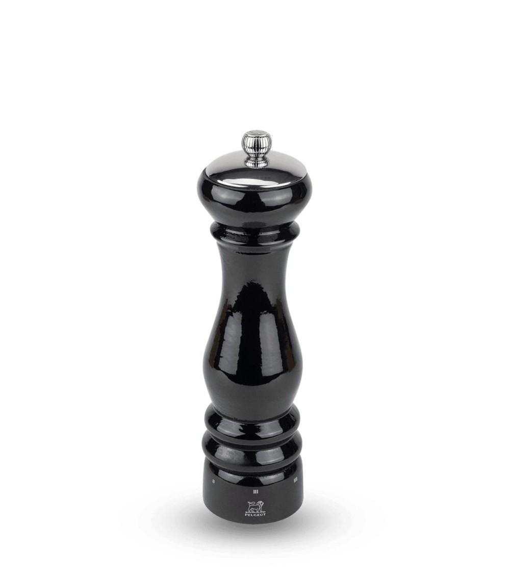Le modèle le plus emblématique de la collection Peugeot, appelé Paris, fait peau neuve avec un design modernisé et s'habille d'une magnifique robe laquée noire. Ce moulin à poivre donne un coup d'éclat à votre table. Sa coupelle brillante en inox, qui cache une fonction de remplissage, procure à ce moulin en bois une touche d'élégance supplémentaire. Des formes contemporaines qui s'élancent sous l'éclat d'une finition laquée noire. Le design du célébré moulin Paris, datant de 1987, a été revisité dans cette version sublimée, plus raffinée. Voici le moulin à poivre Paris icone laqué noir dans sa version 22 cm. Ce moulin à poivre Peugeot en bois de hêtre est autant un plaisir pour les yeux qu'un instrument de précision pour ajuster la finesse de la mouture. Equipé du système de réglage u'Select exclusif et breveté Peugeot, il offre 6 positions de réglage de mouture allant de la plus fine en position 1 à la plus grosse en position 6. Ainsi vous pourrez très facilement trouver la taille de mouture qui correspond le mieux aux saveurs que vous recherchez. Comme tous les moulins Peugeot, son mécanisme à poivre en inox est garanti sans limitation de durée.