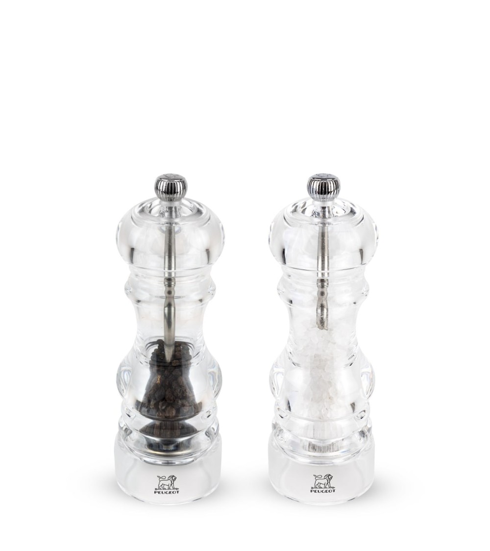 Un duo de moulins poivre et sel tout en transparence pour relever tous vos plats en cuisine comme sur la table Tout en transparence pour voir les grains de poivre comme les cristaux de sel, le duo Nancy 18 cm de Peugeot forme un couple irrésistible toujours à portée de main en cuisine et sous le feux des regards à table.