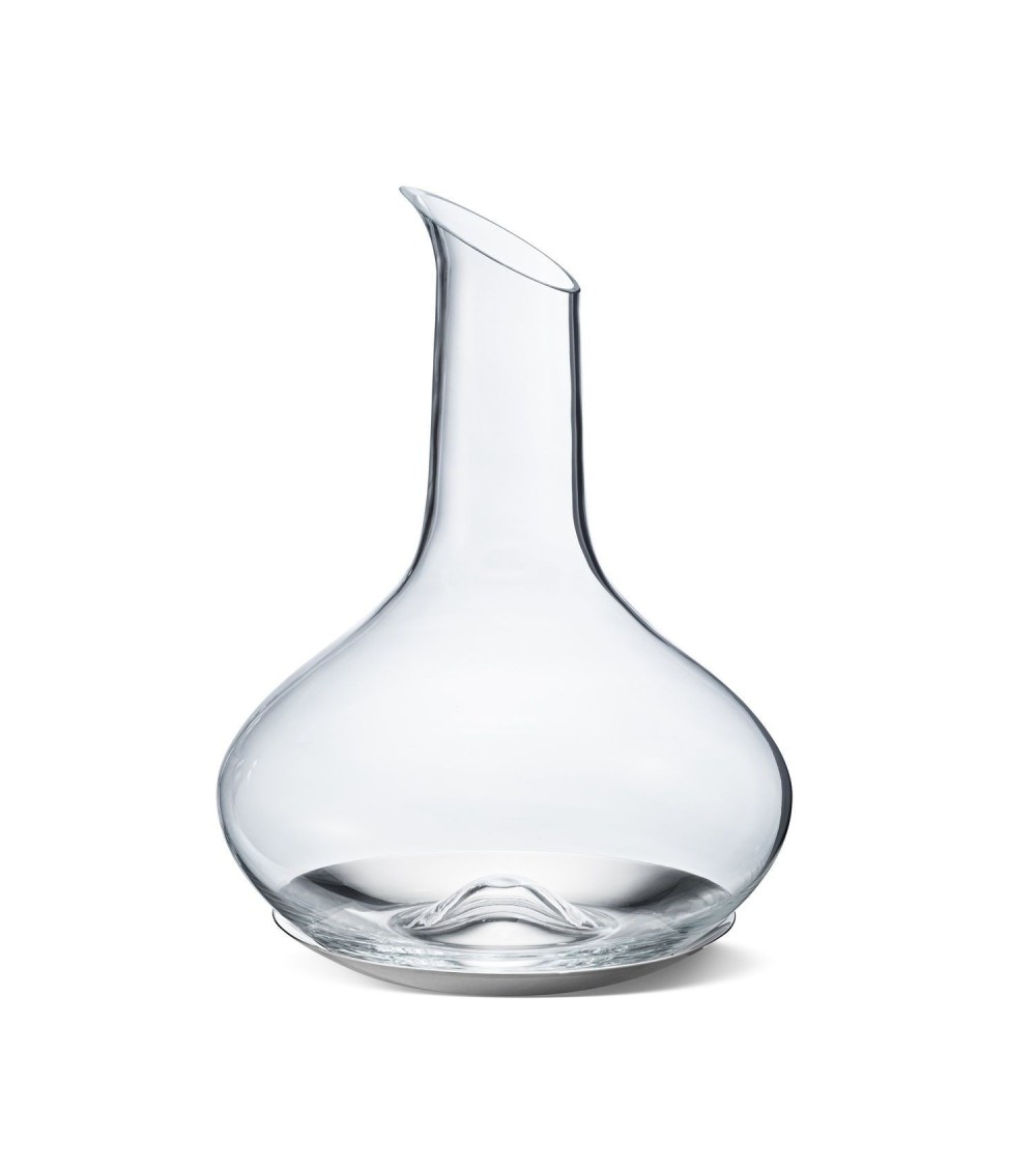 Cette carafe à vin ajoute un bel accessoire, presque indispensable, à la série SKY de Georg Jensen. Il permet de servir les vins fins sous une forme appropriée et d'offrir le plus haut niveau de plaisir en matière de style. Offrez à vos vins préférés l'occasion de prendre une grande respiration en les carafant dans le magnifique vase du designer Aurélien Barbry et laissez leur bouquet s'épanouir pleinement. La carafe Georg Jensen SKY est fabriquée au Portugal à partir de verre soufflé à la bouche. Le bec est coupé et arrondi, et le bec et le bec sont coupés et polis à la main. Une apparence noble et un versement sans goutte sont donc une évidence. La carafe bulbeuse a une capacité de 0,75 litre jusqu'à son point le plus large et offre ainsi à une bouteille de vin la surface maximale pour un contact avec l'air suffisant afin que le vin puisse développer son arôme optimal. Le temps qu'un vin doit respirer dépend largement de son âge. Pour un vin rouge plus âgé, 10 minutes suffisent, tandis que les vins rouges jeunes et corsés ont besoin de 2 heures pour être prêts à boire et pour évaporer les résidus d'acide carbonique ou les éventuelles odeurs désagréables. Lors de la décantation dans la magnifique carafe à vin SKY, le dépôt et le tartre restent dans la bouteille en la tournant un peu tout en versant le dernier résidu. Les sédiments sont ainsi répartis à l'intérieur de la bouteille. Offrez-vous, ainsi qu'à vos invités, une noble goutte et servez-la avec style. Dans la carafe SKY de Georg Jensen.
