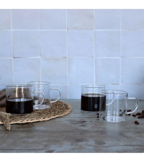Pour tous les amoureux du café et du thé qui aiment prendre le temps de préparer leurs boissons, et pour ceux qui hésitent encore entre le vintage et le moderne, nous avons créé la collection Helya. Complétez votre collection avec ces 4 tasses en verre borosilicate. Le verre borosillicate est un matériau sain et solide, qui les rend très résistantes à la chaleur et ultra légères. Tasses à café ou thé en verre borosilicate résistante à la chaleur La capacité de ces tasses en verre OGO est de 25 centilitres Munie d'une anse élégante pour ne pas se brûler Compatible lave vaisselle