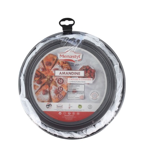 Set 3 moules à charnières en acier carbone 22 cm, 24 cm et 26 cm