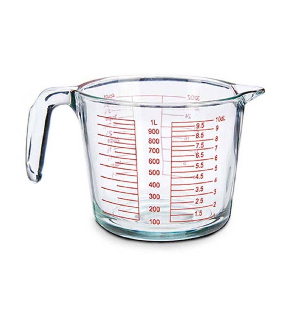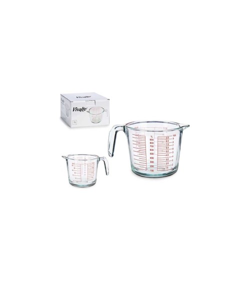 Pichet doseur en verre transparent avec graduation rouge.Dimensions: 15x11x21cmCouleur: Transparent et RougeMatière: Verre