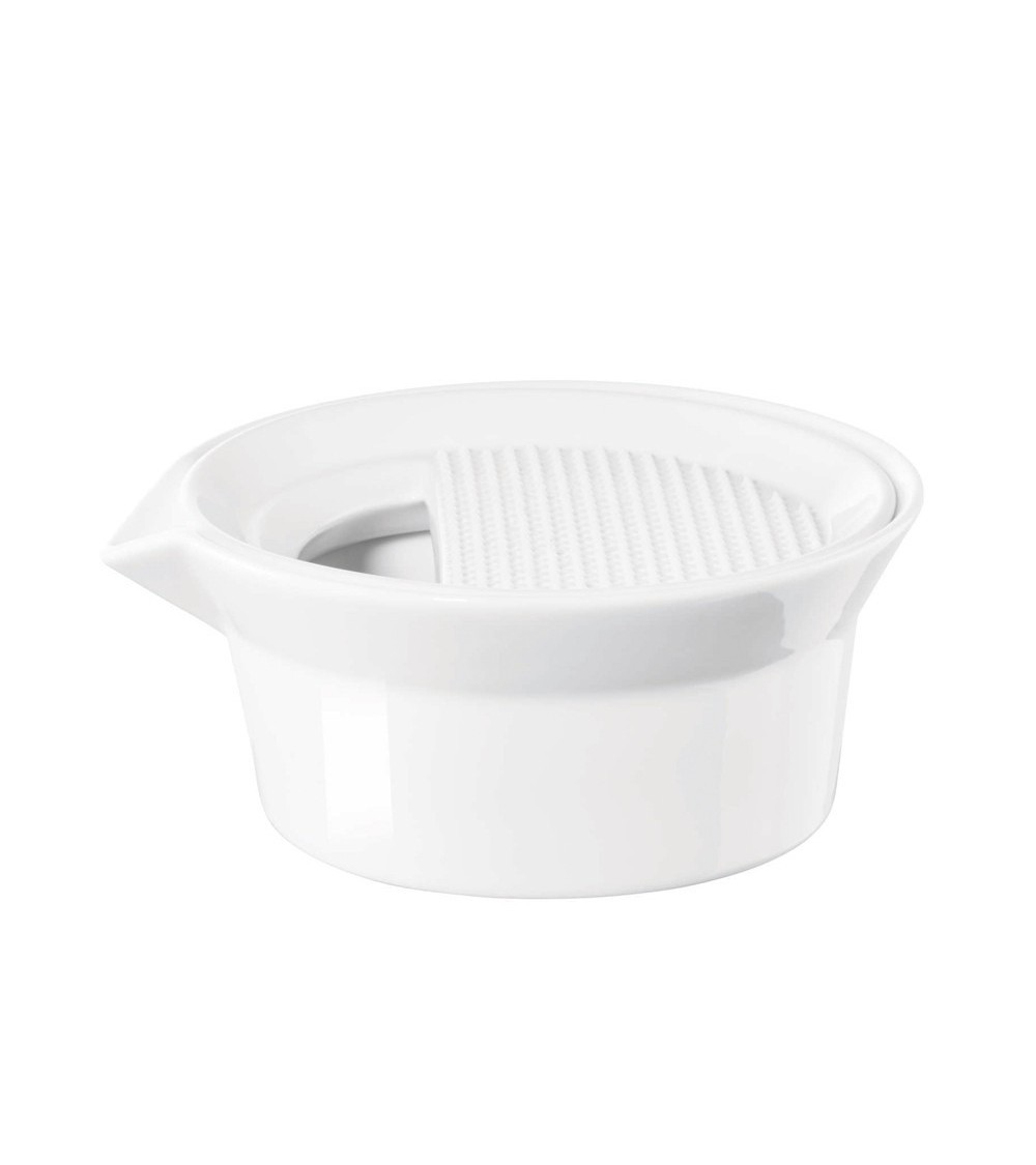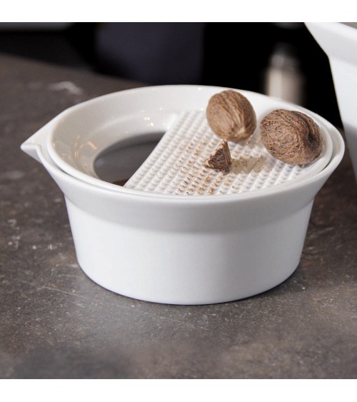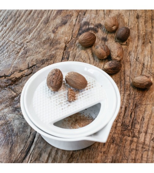 Une râpe à condiment original et au design moderne. Avec son conteneur, elle est idéal pour râper gingembre, noix de muscade, zeste de citron etc... Dimensions : diam 12 x 9.5 cm Matière : porcelaine